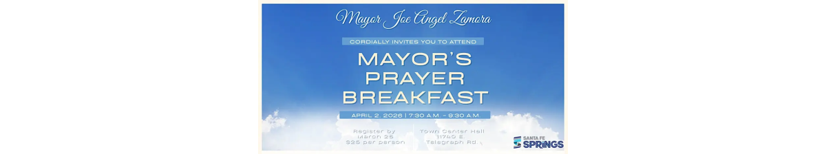 Join us for a morning of prayer and community fellowship at the 2026 Mayor's Prayer Breakfast in Santa Fe Springs!